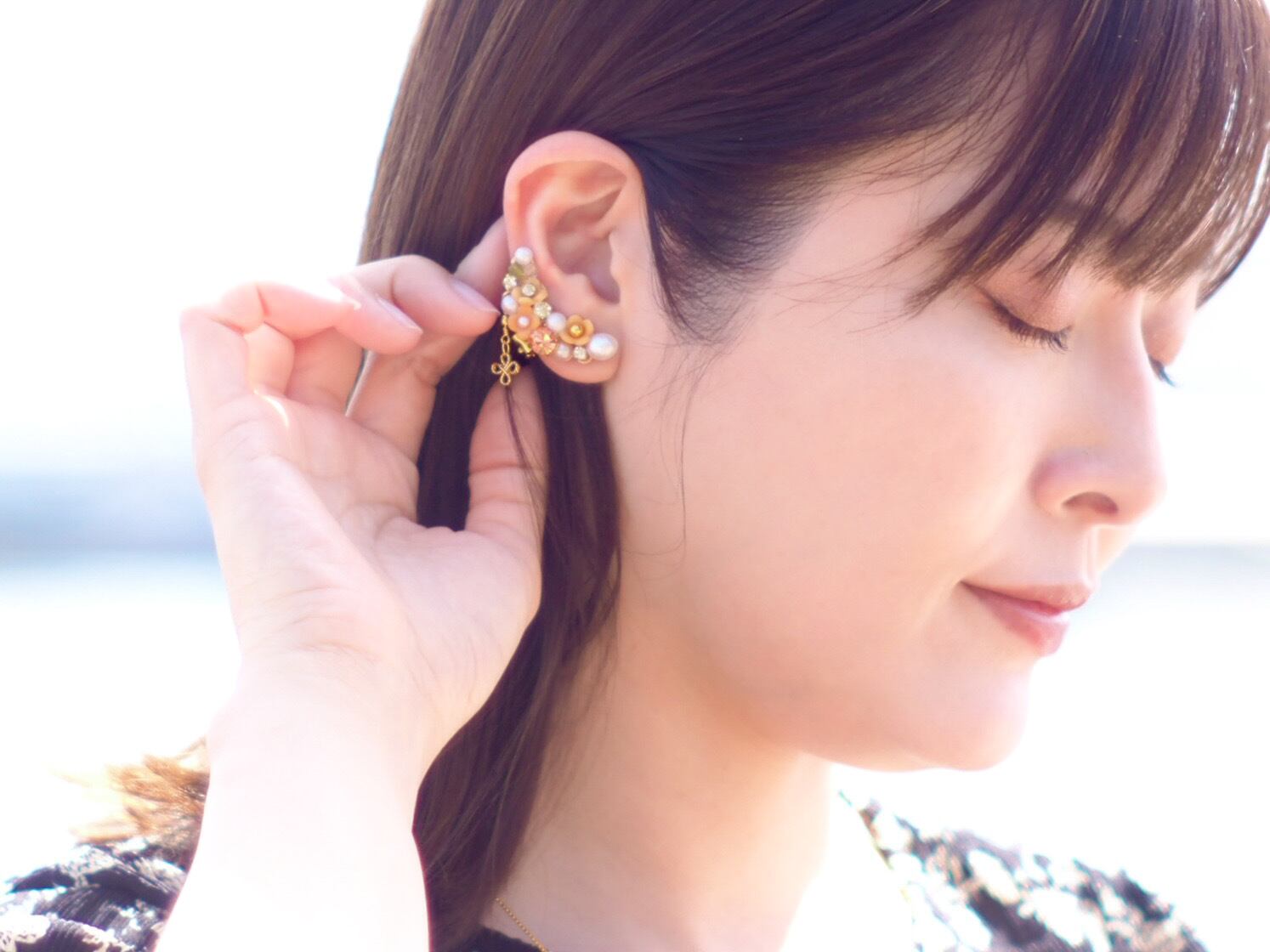 クリップ式イヤリングは、耳たぶだけでなく軟骨部分にも着けることができます。