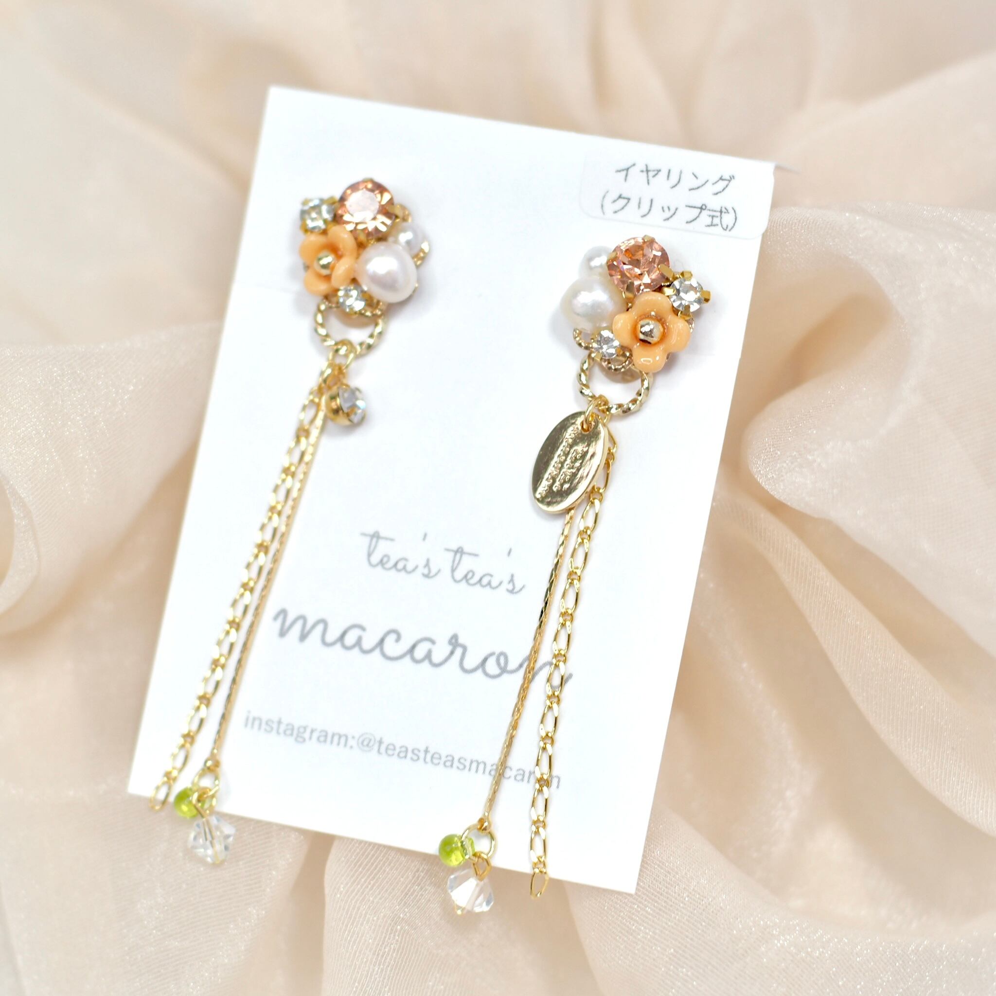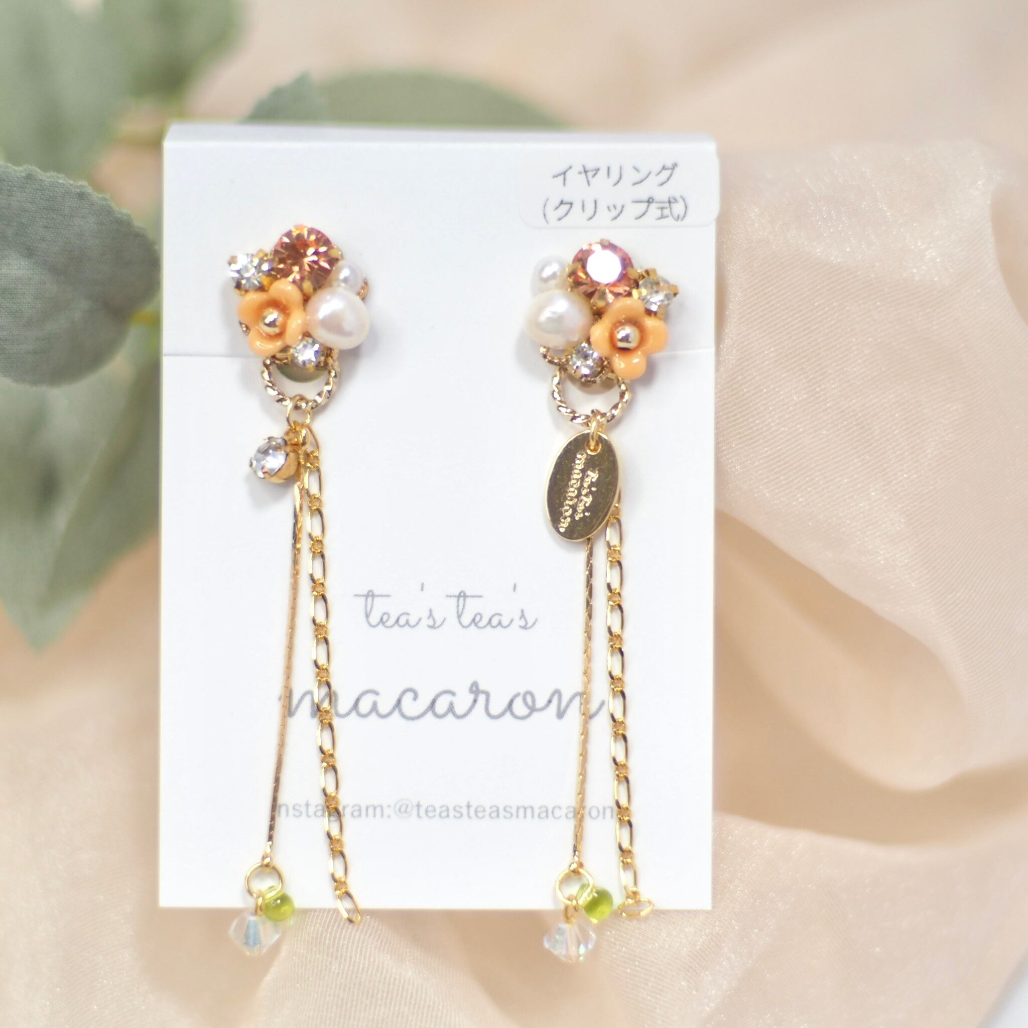 金具は、アレルギー対応のステンレスピアスor痛くなりにくいクリップ式イヤリングからお選びいただけます。