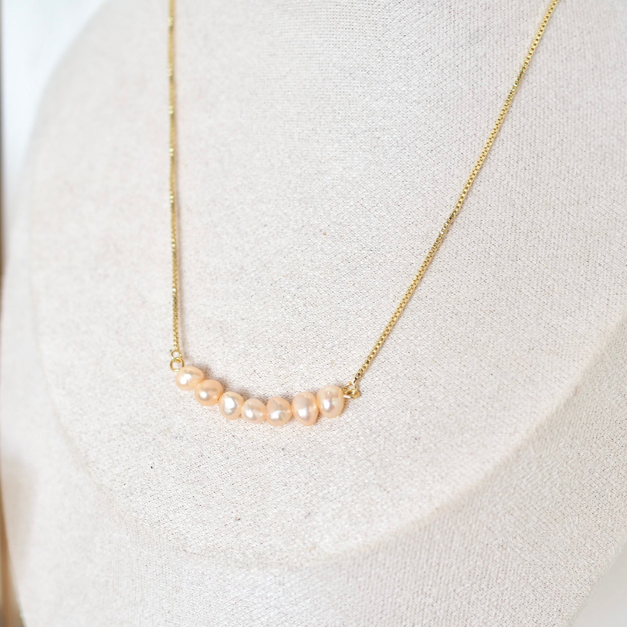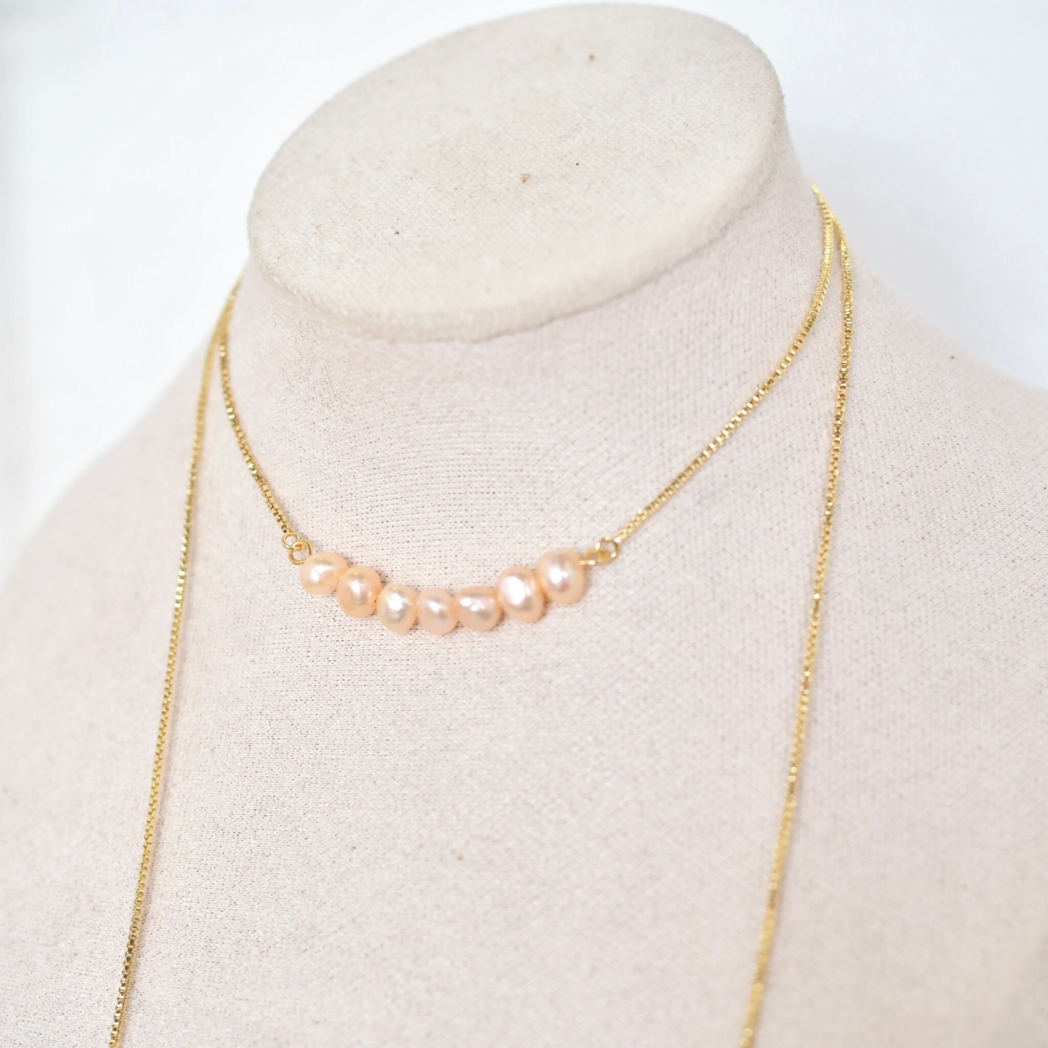 18kgp淡水パールネックレス スライド式 コーラルピンク