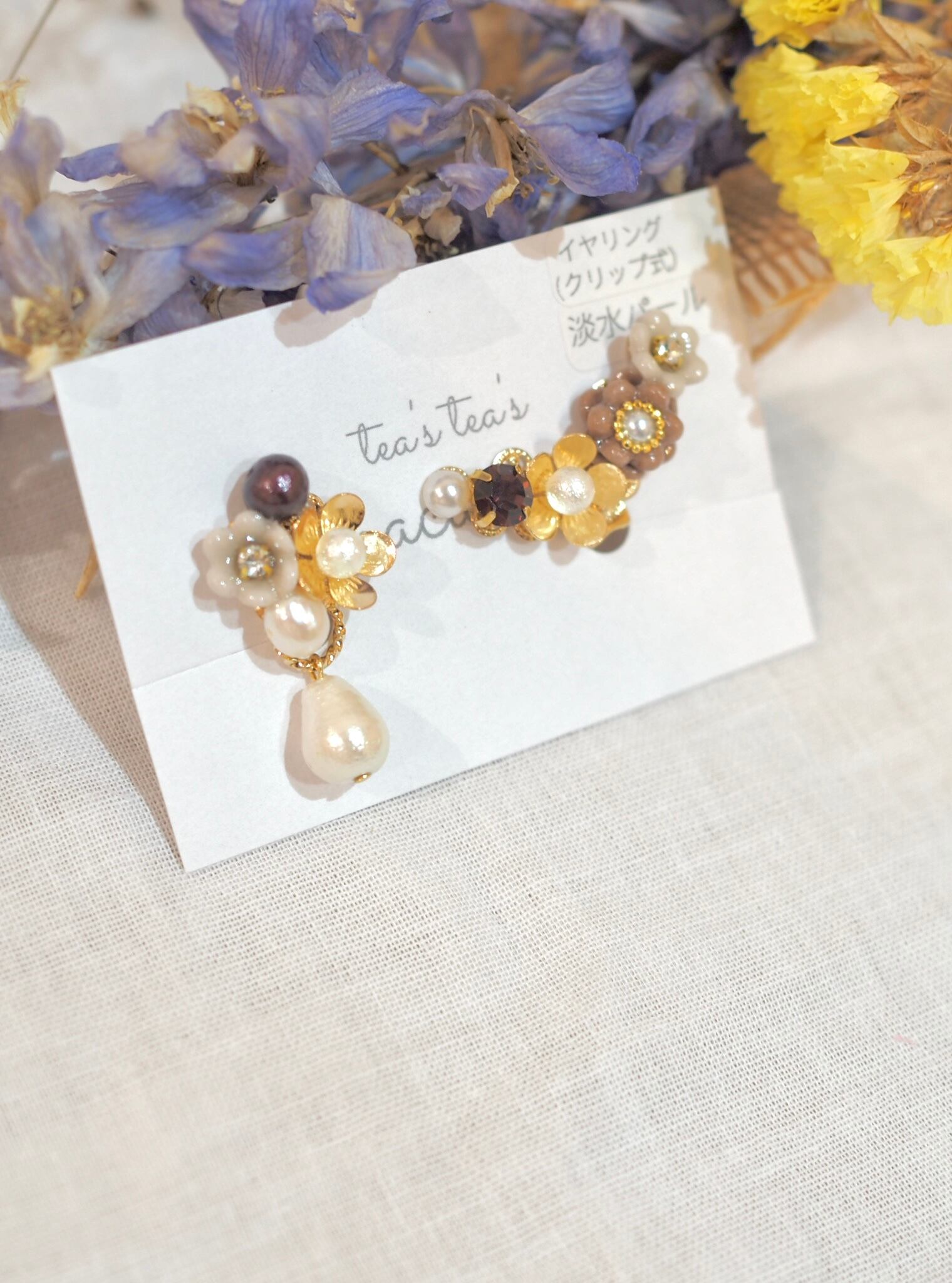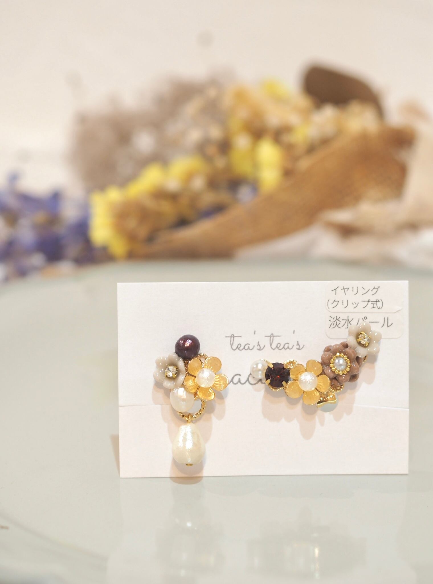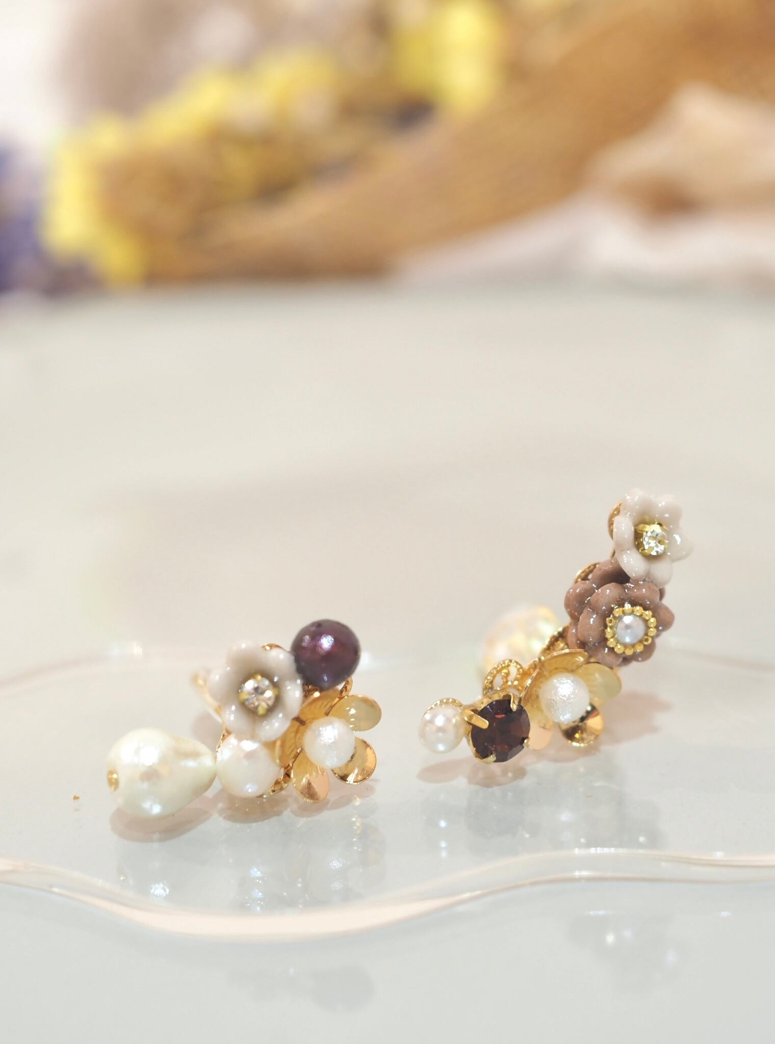 ひとつひとつ手作りしたお花が主役の耳飾り♩