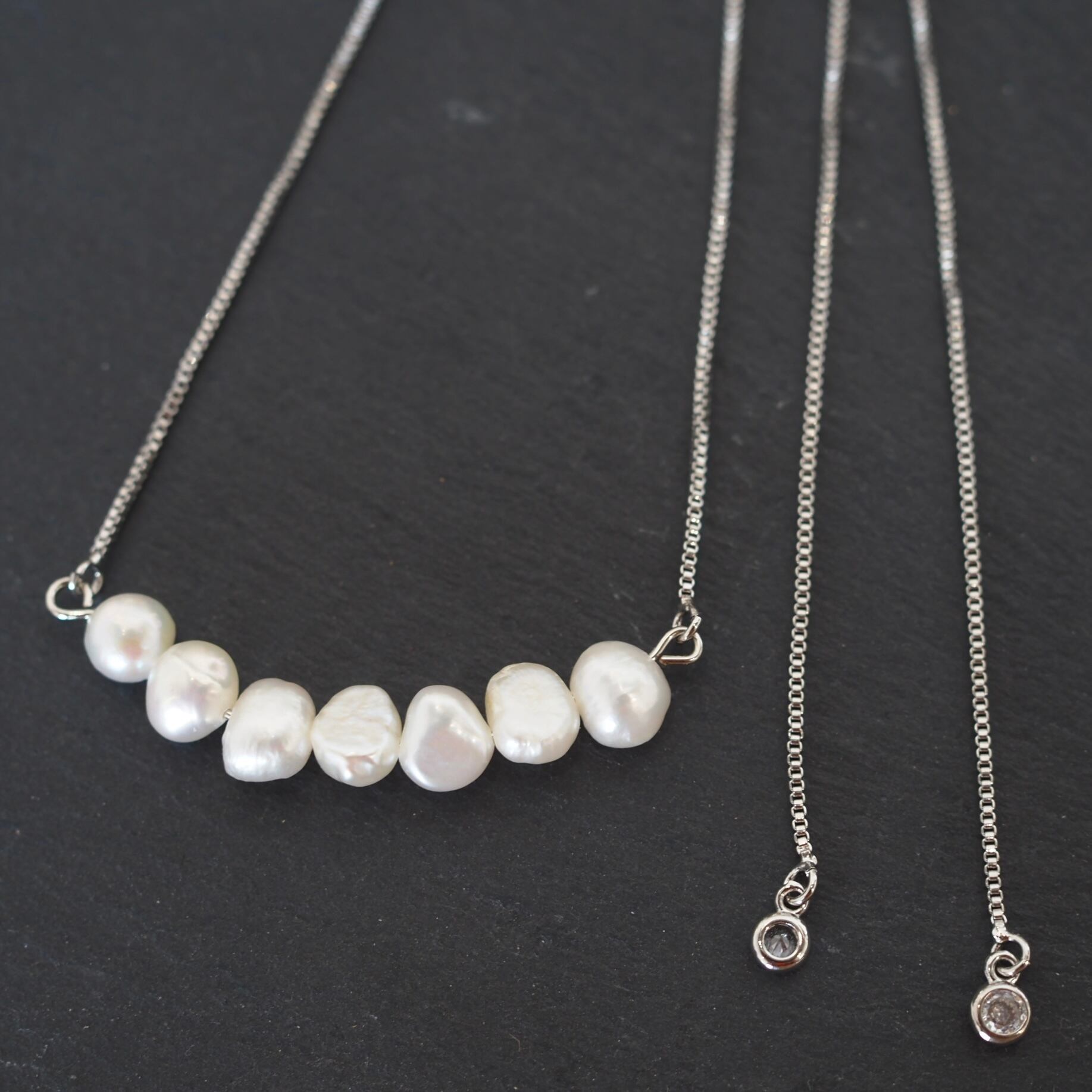 スライド式・:*淡水パールネックレス シルバー×白 ロジウム