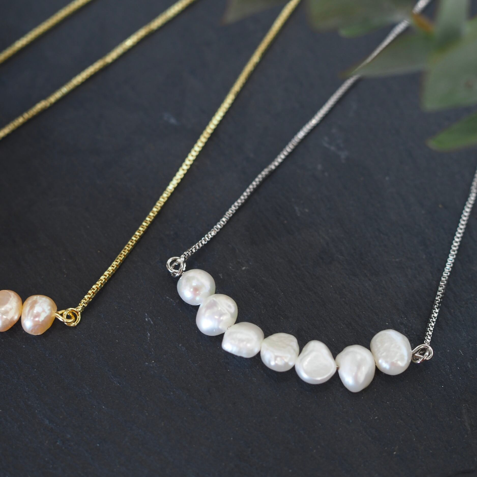 淡水パールはひとつひとつ綺麗な7粒をセレクト。