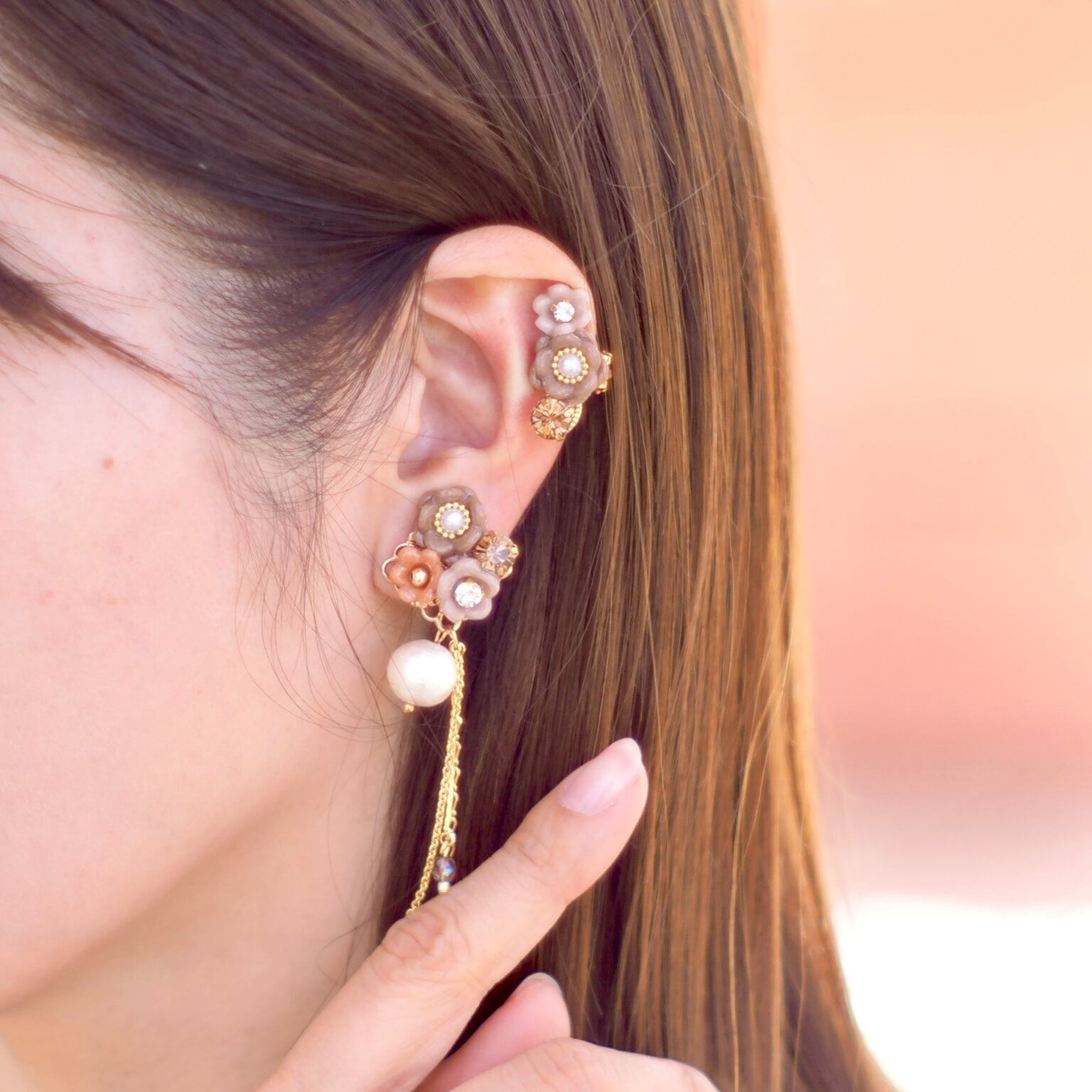 クリップ式イヤリングは、耳たぶだけでなく軟骨部分にも着けることができます。