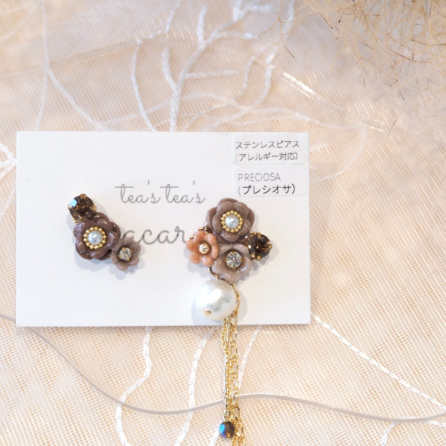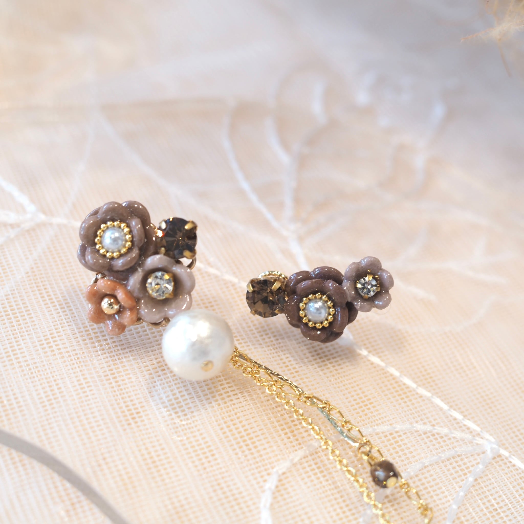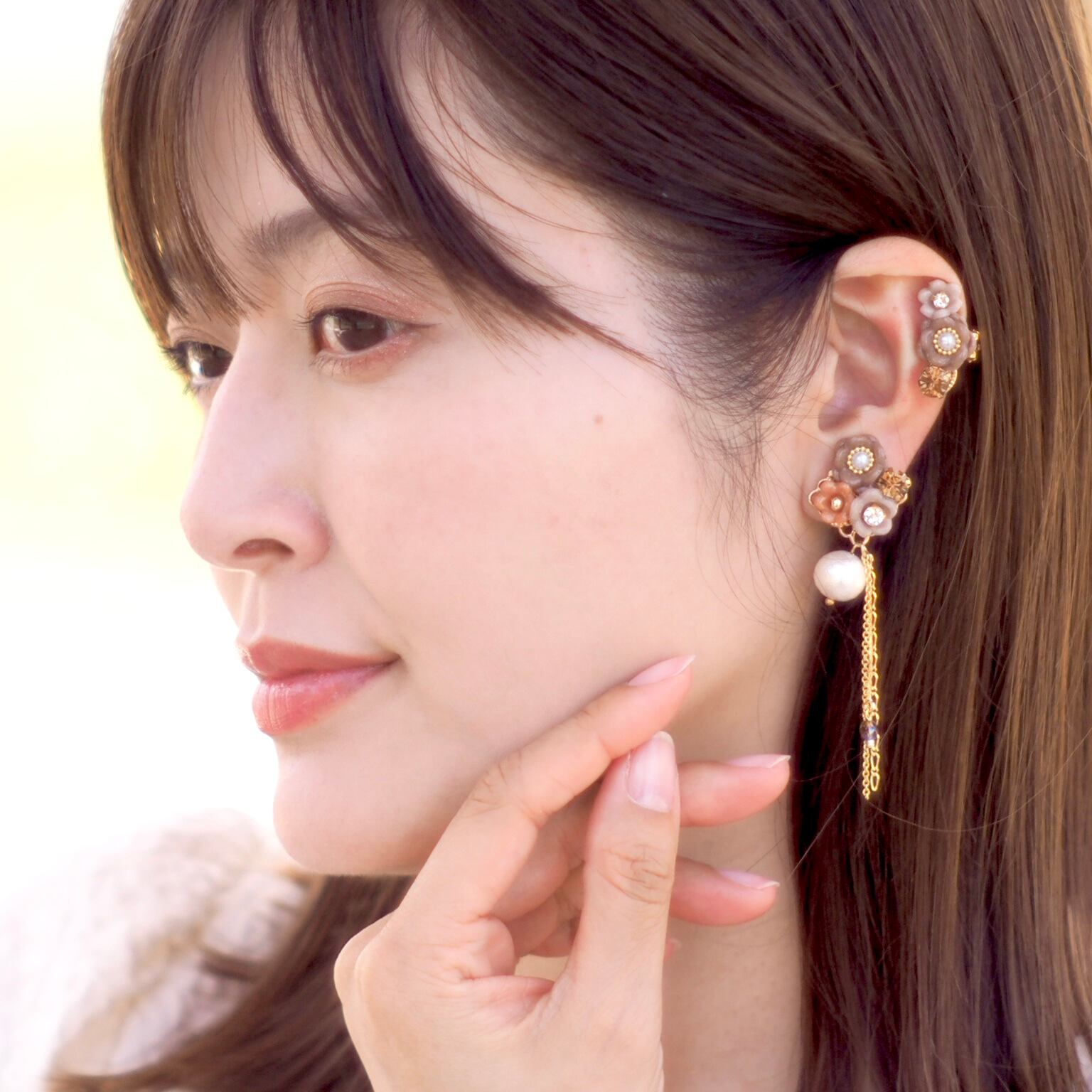 ひとつひとつ手作りしたお花が主役の耳飾り♩
