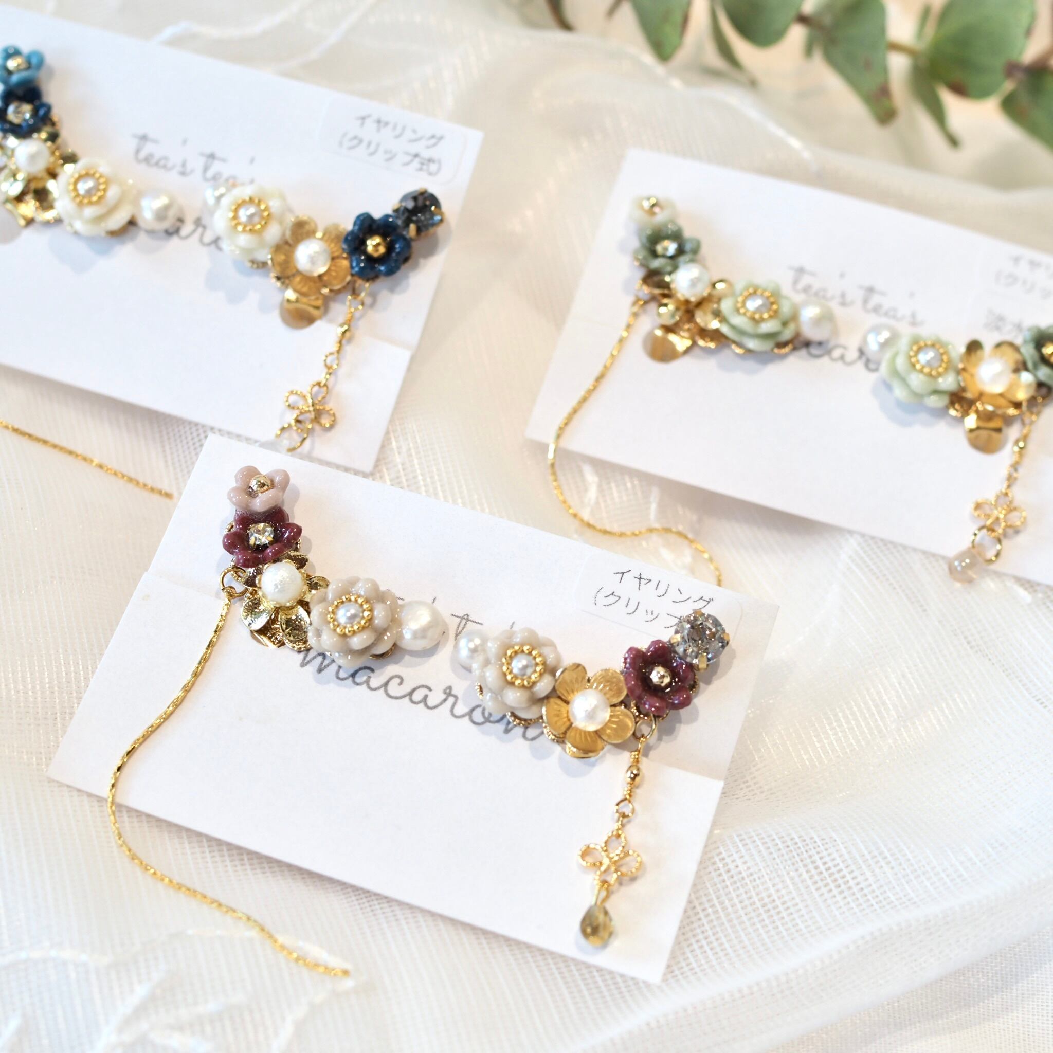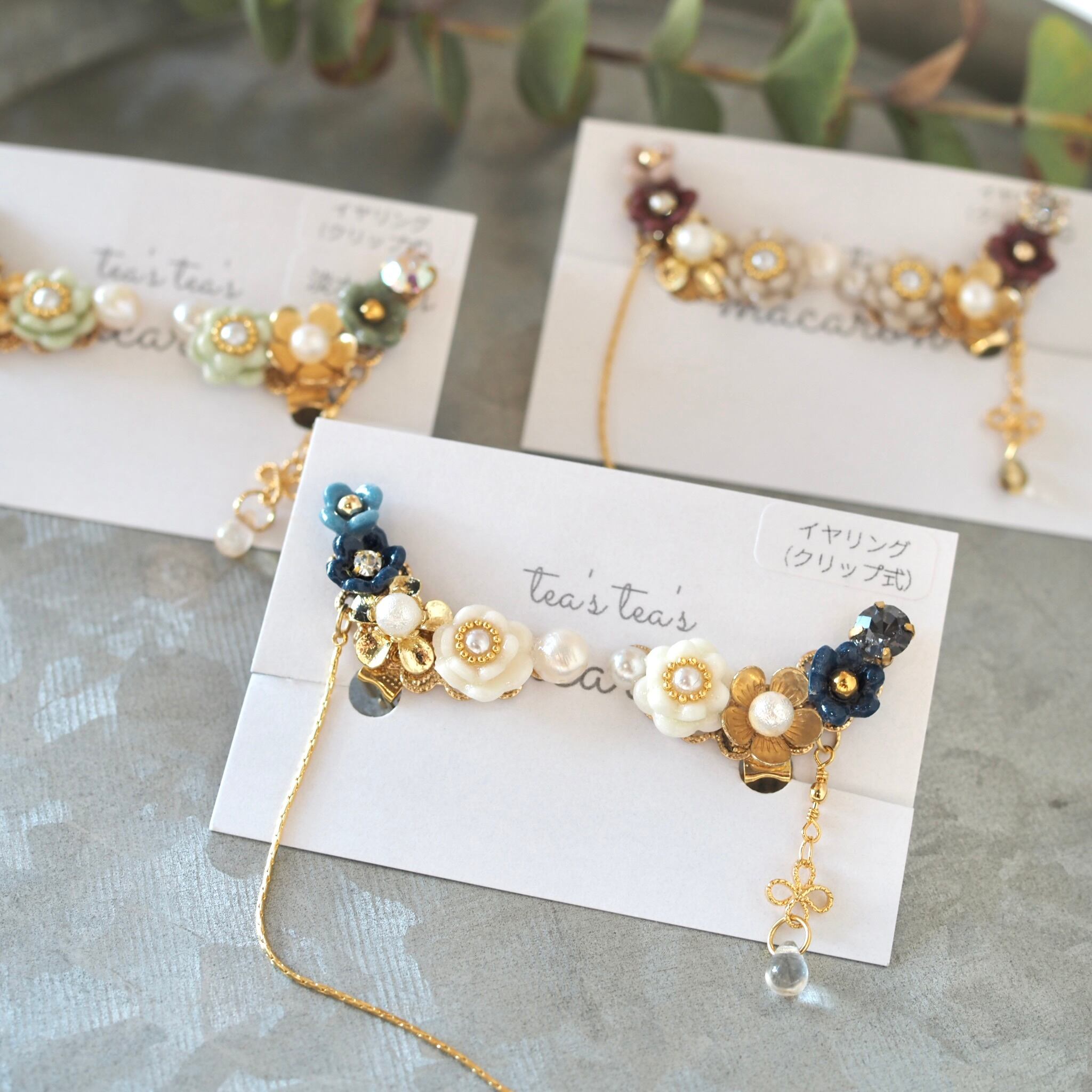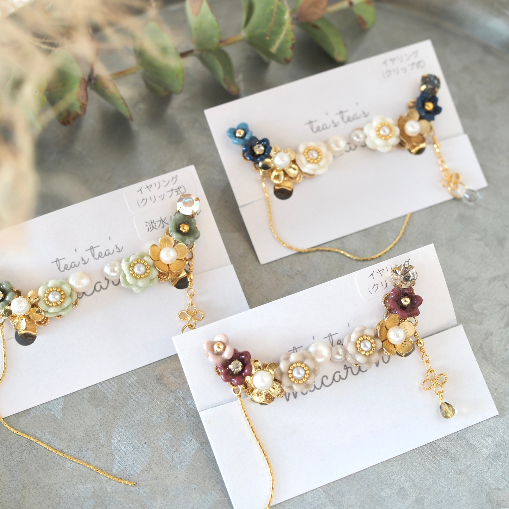 【秋冬新作】秋色フラワーイヤーカフセット ピアス/イヤリング 色が選べる