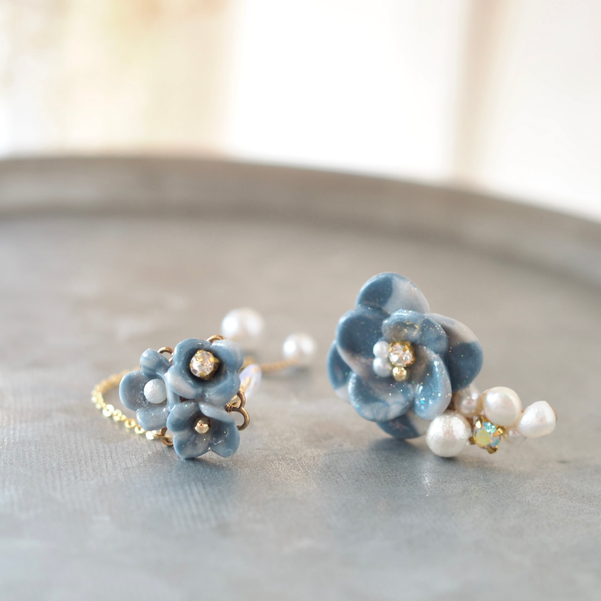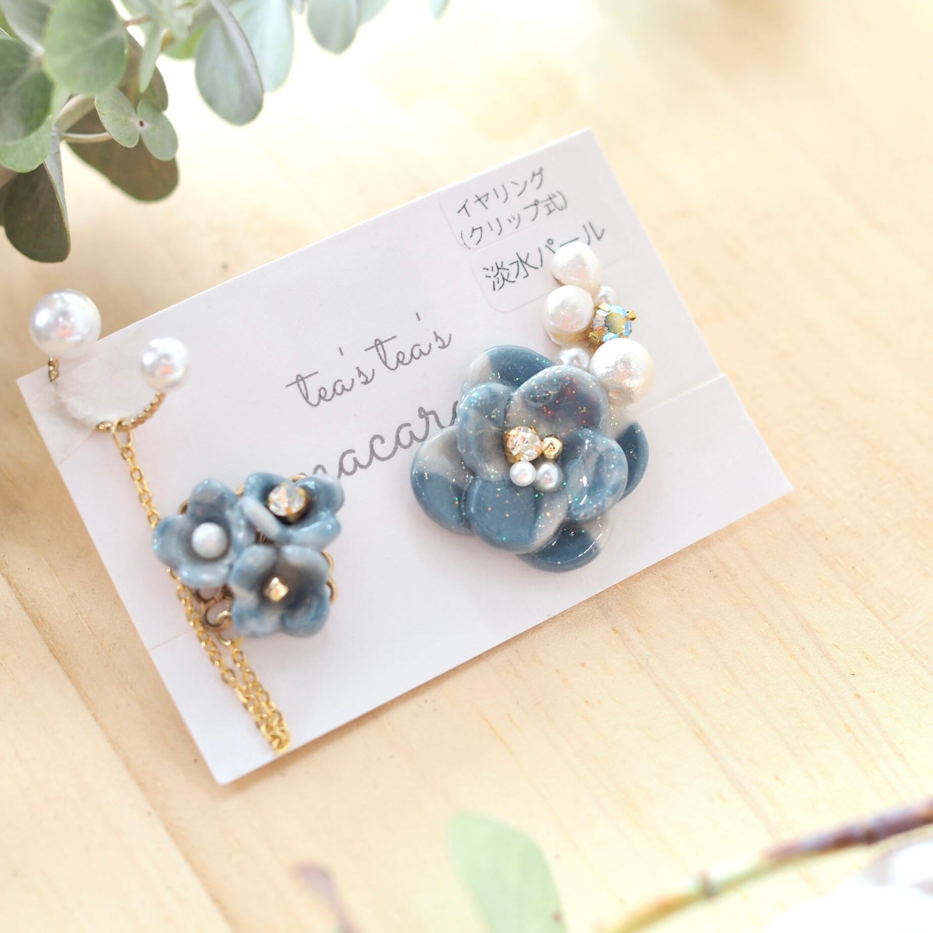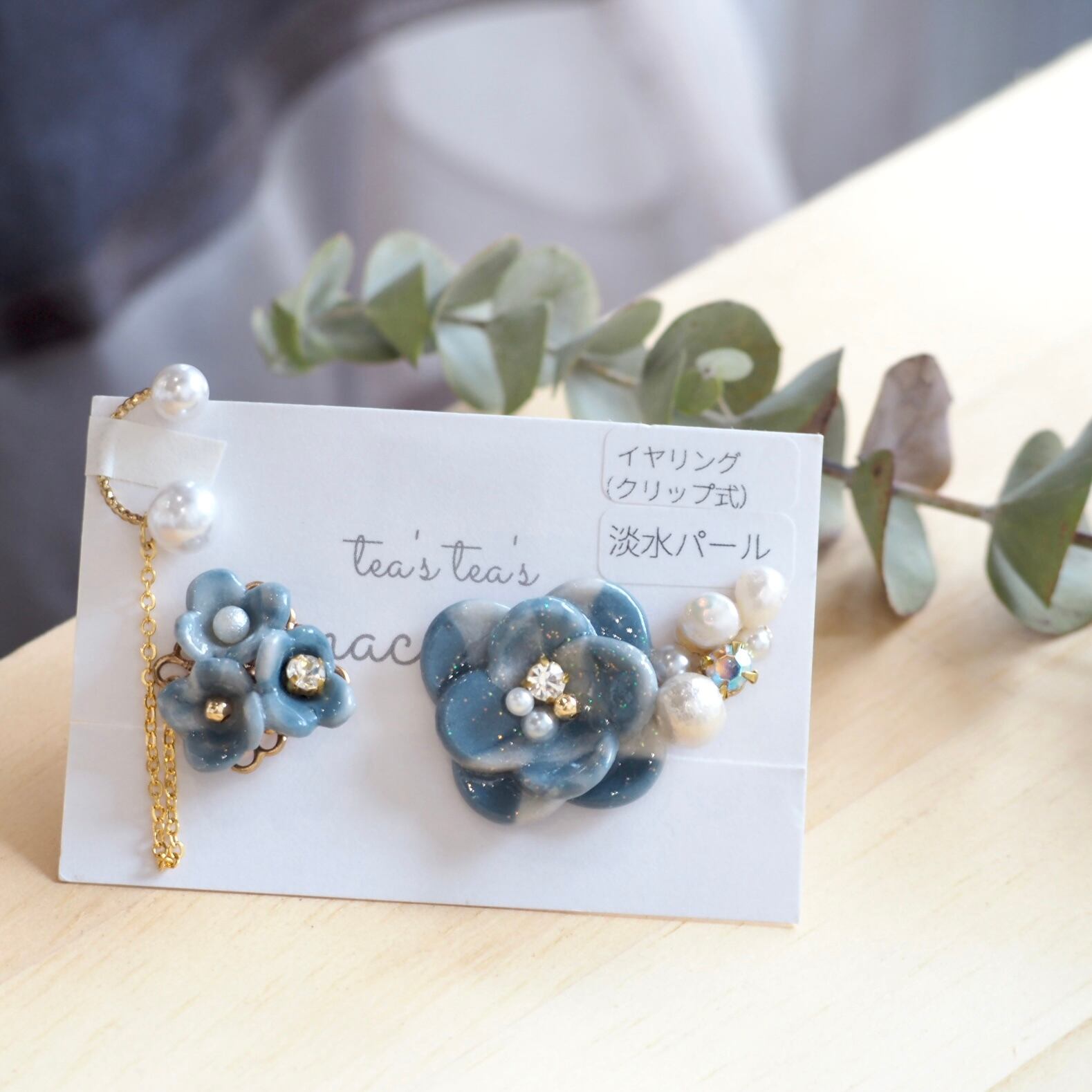 夜空みたいなイヤーカフセット ピアス イヤリング 淡水パール 青系