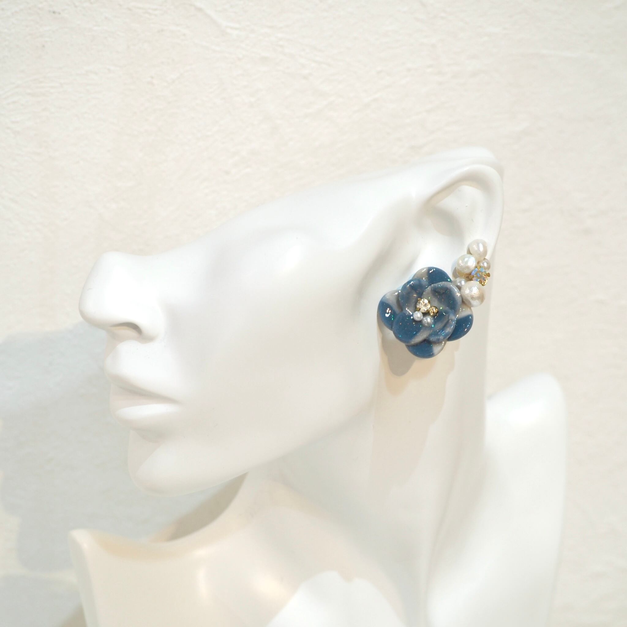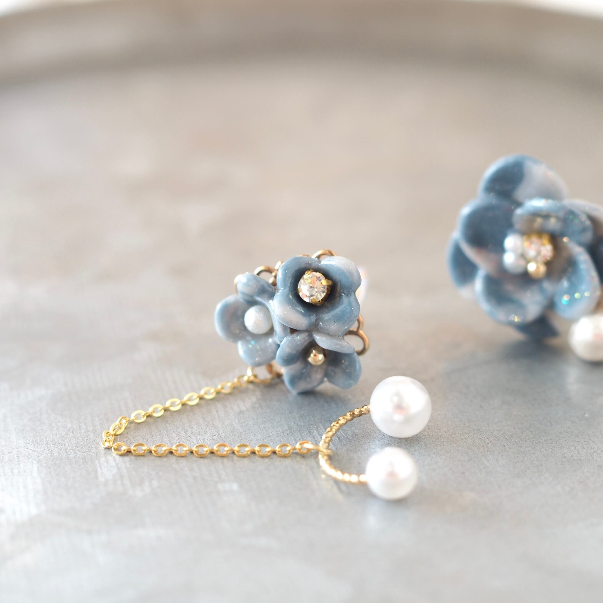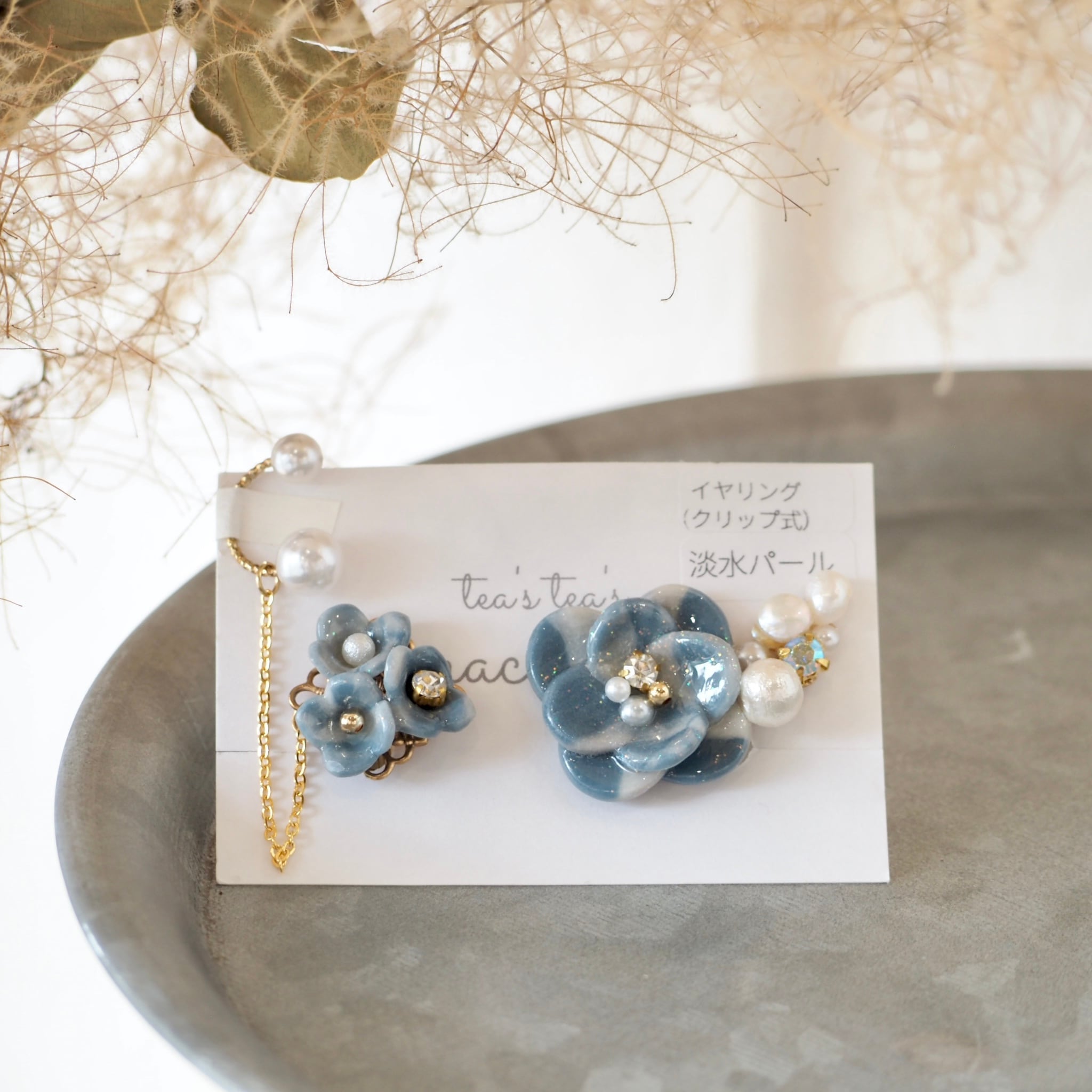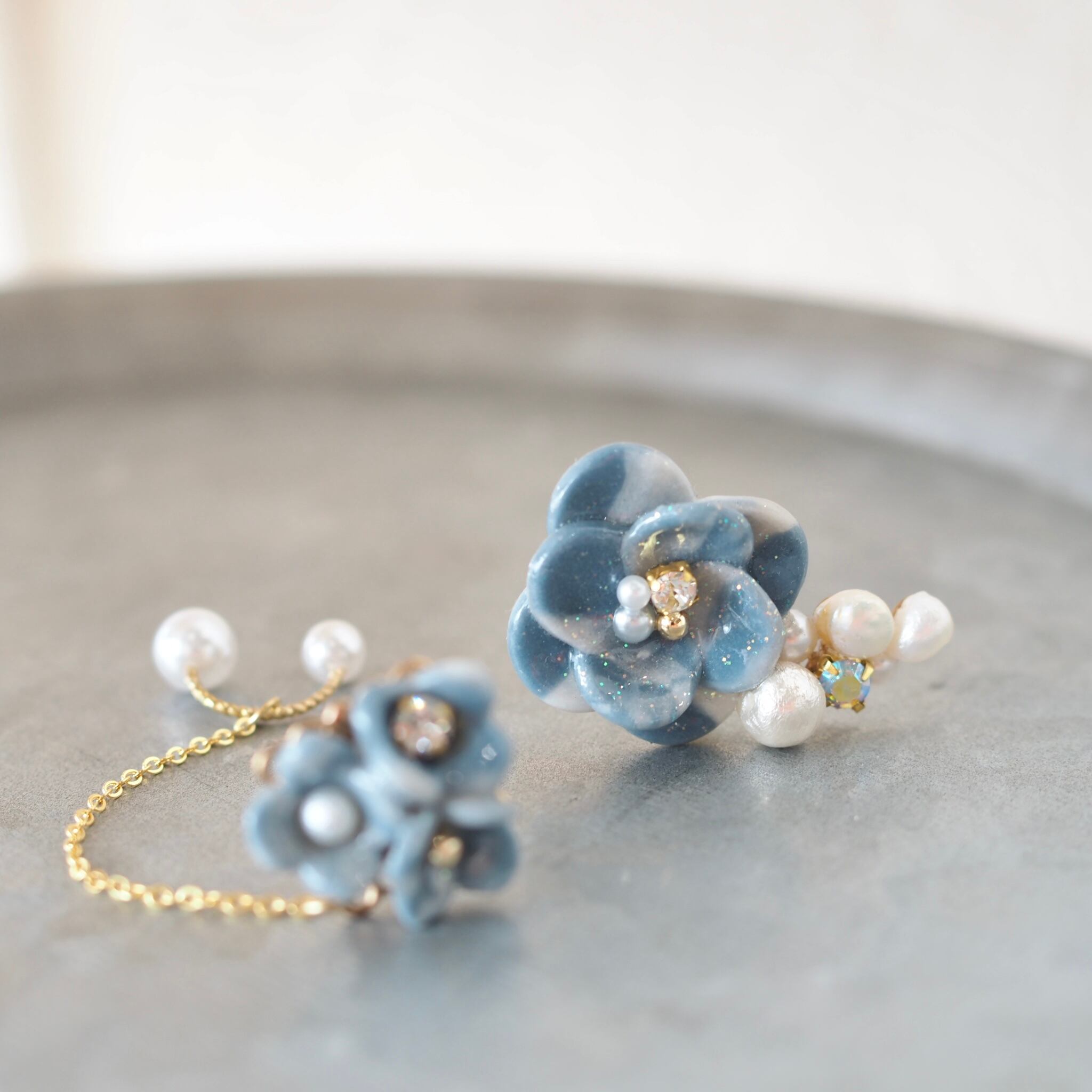 夜空みたいなイヤーカフセット ピアス イヤリング 淡水パール 青系