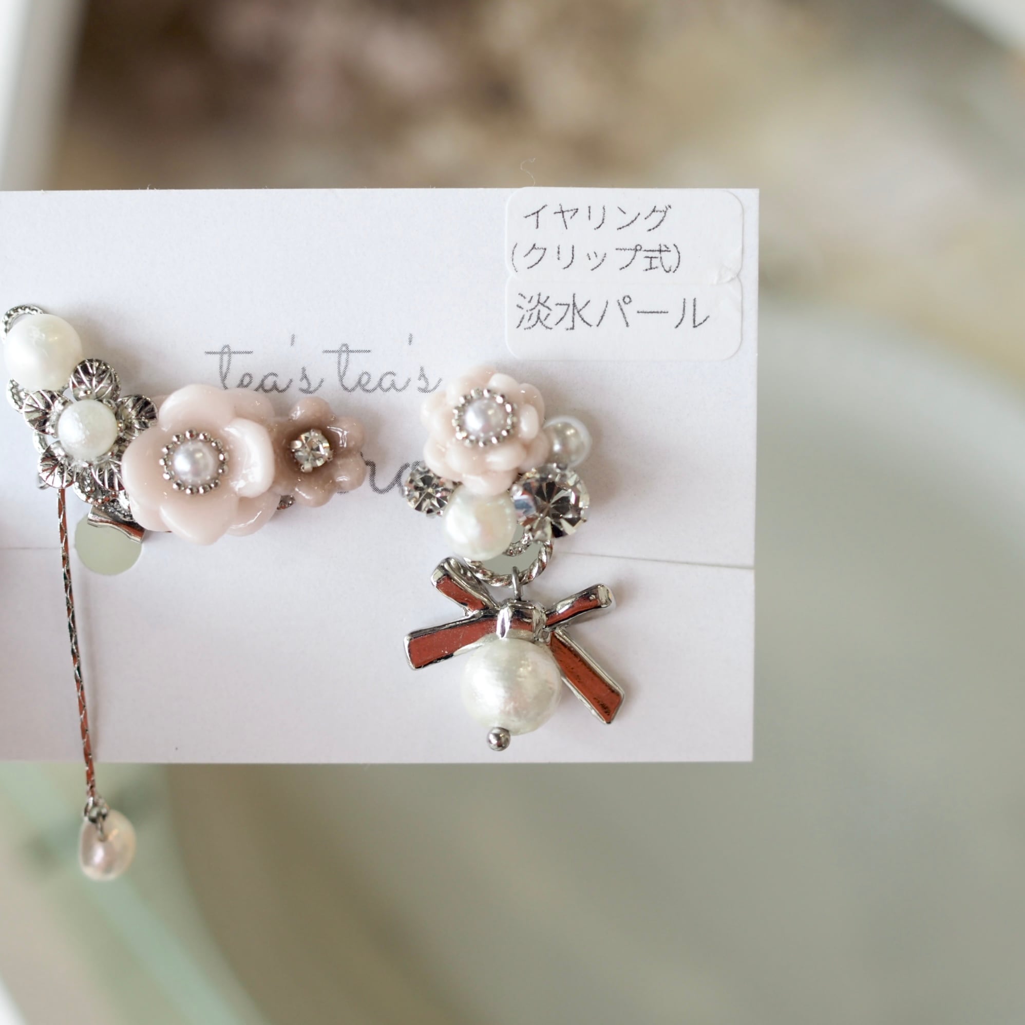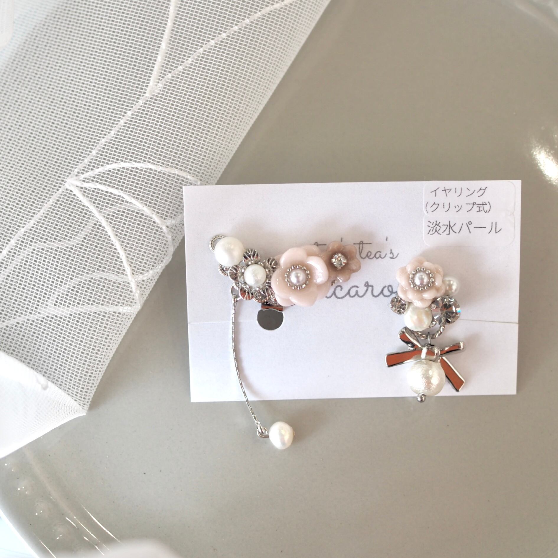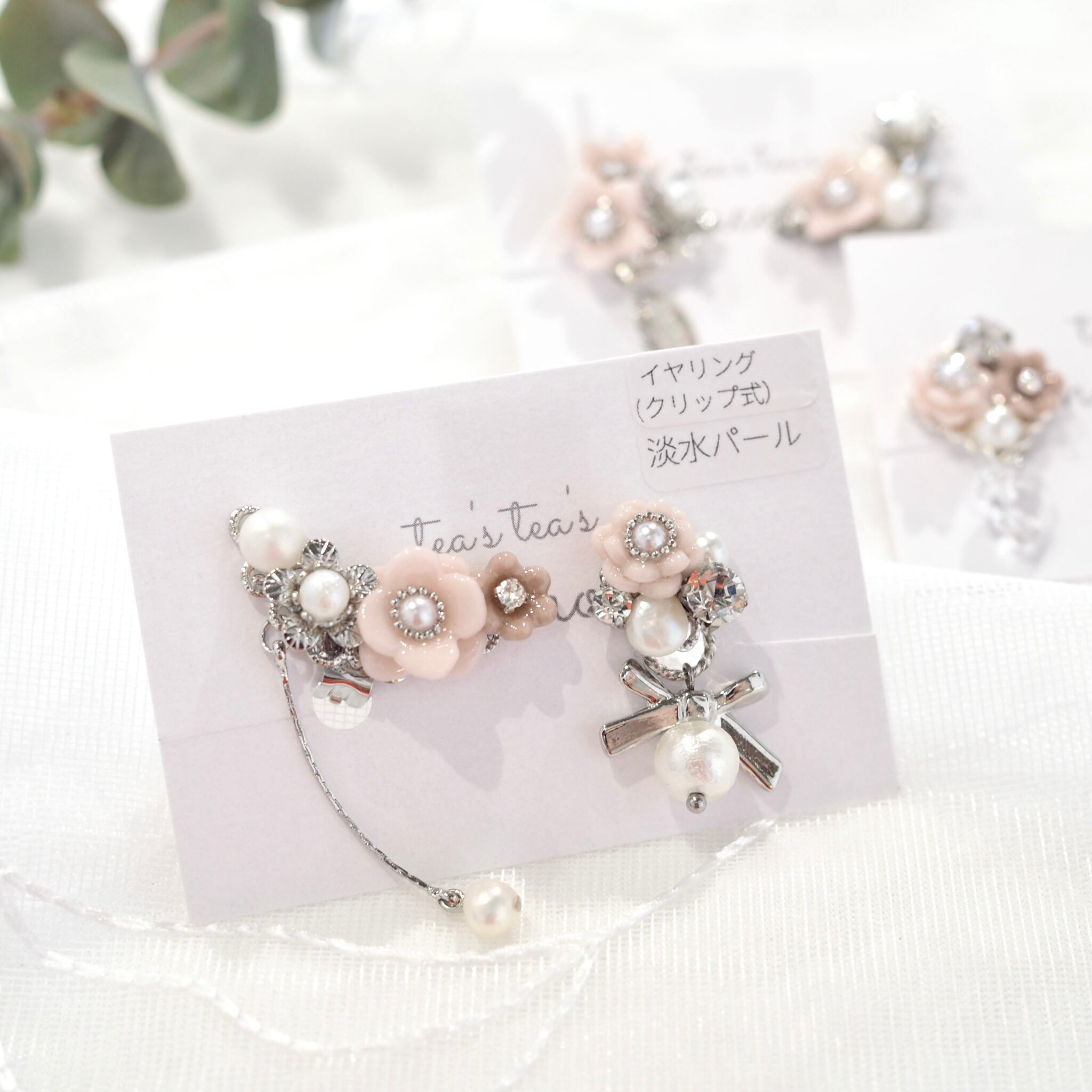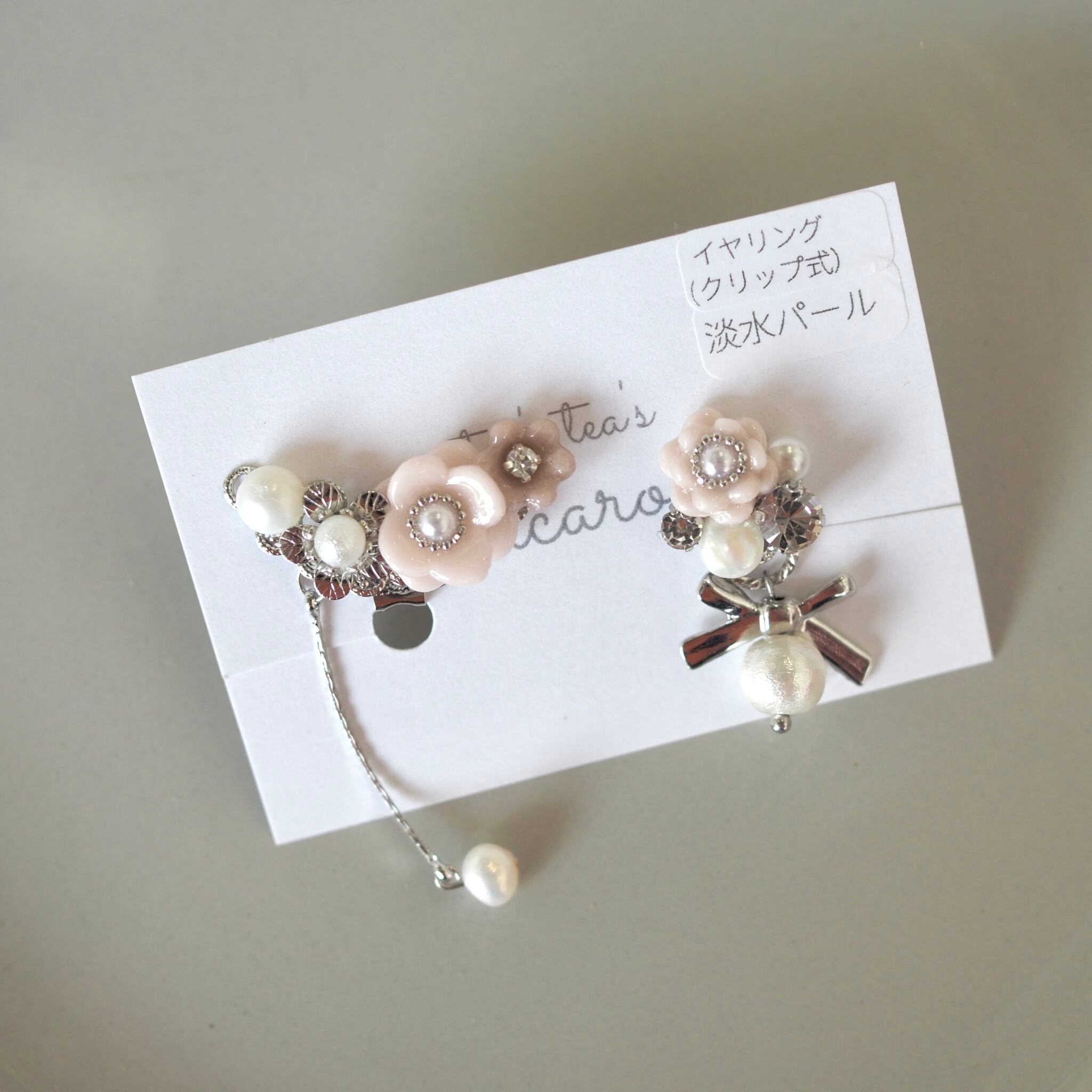 金具は、アレルギー対応のステンレスピアスor痛くなりにくいクリップ式イヤリングからお選びいただけます。