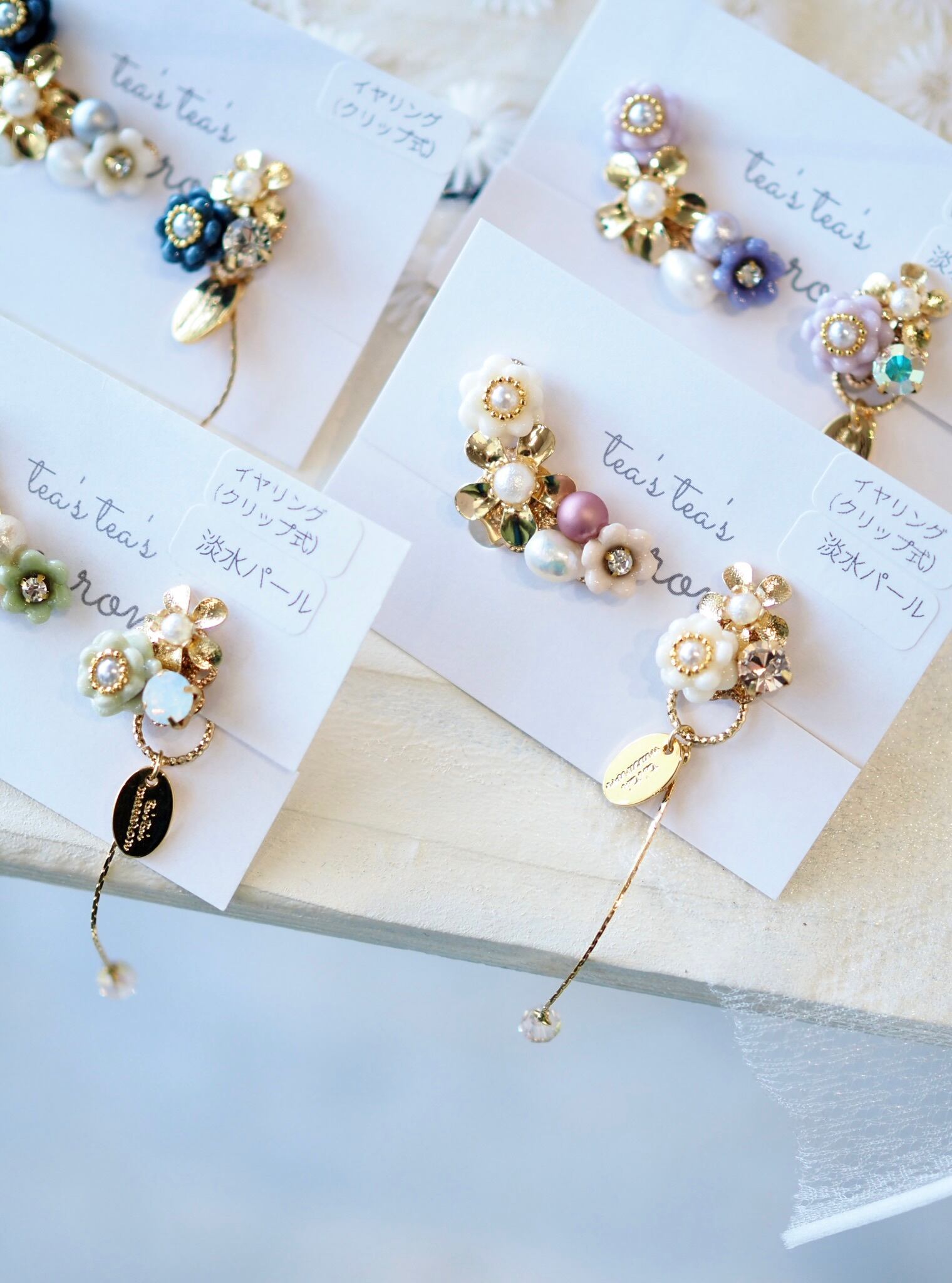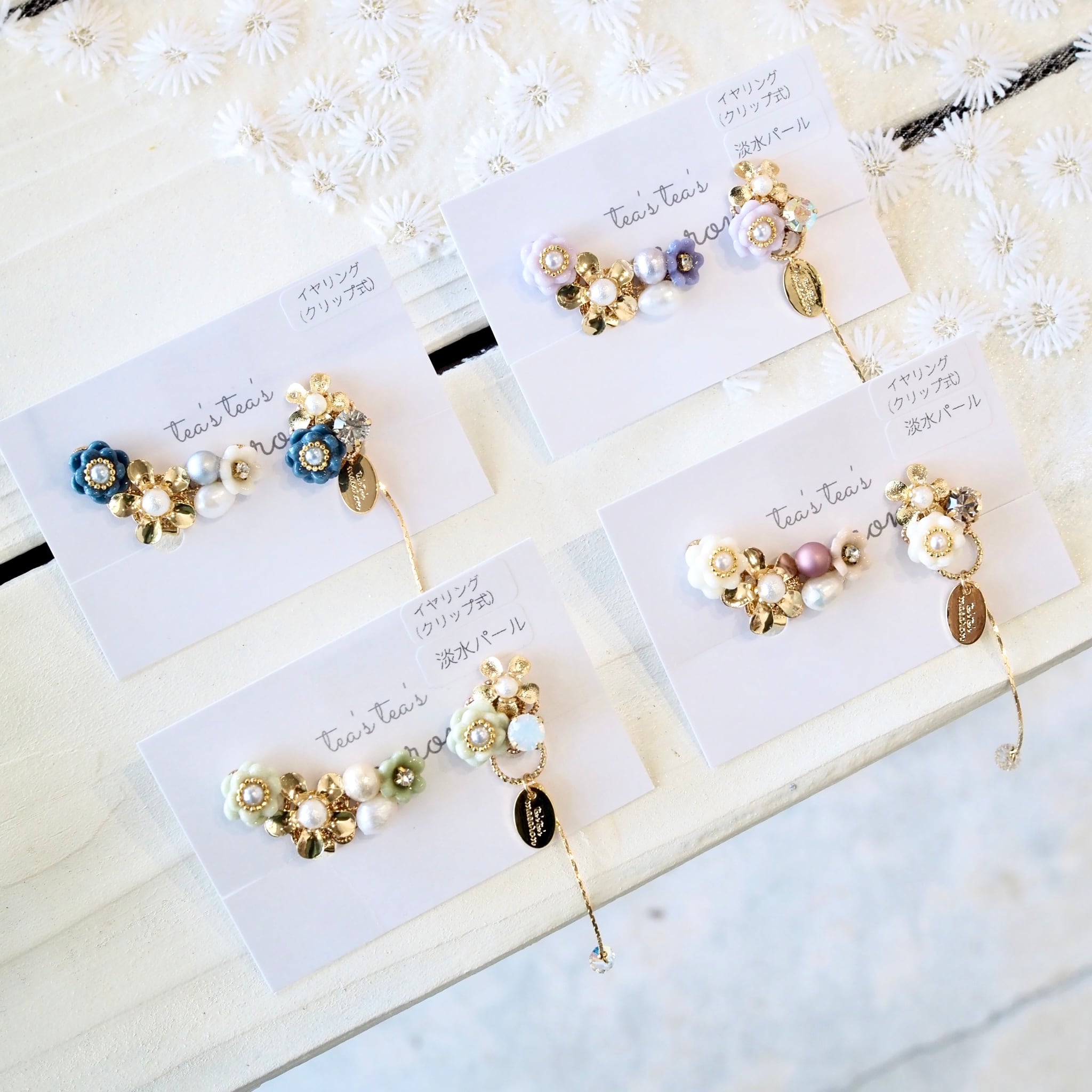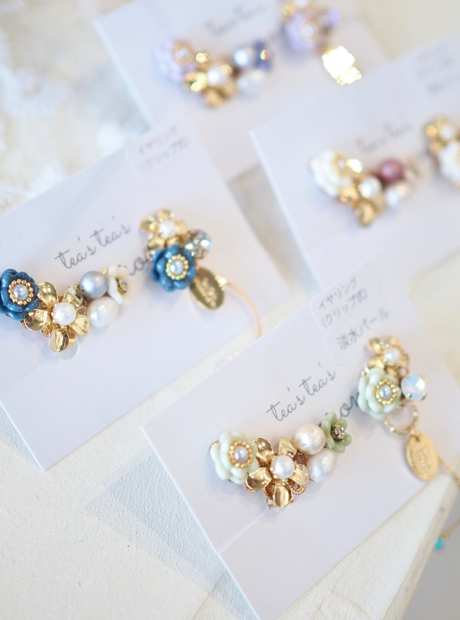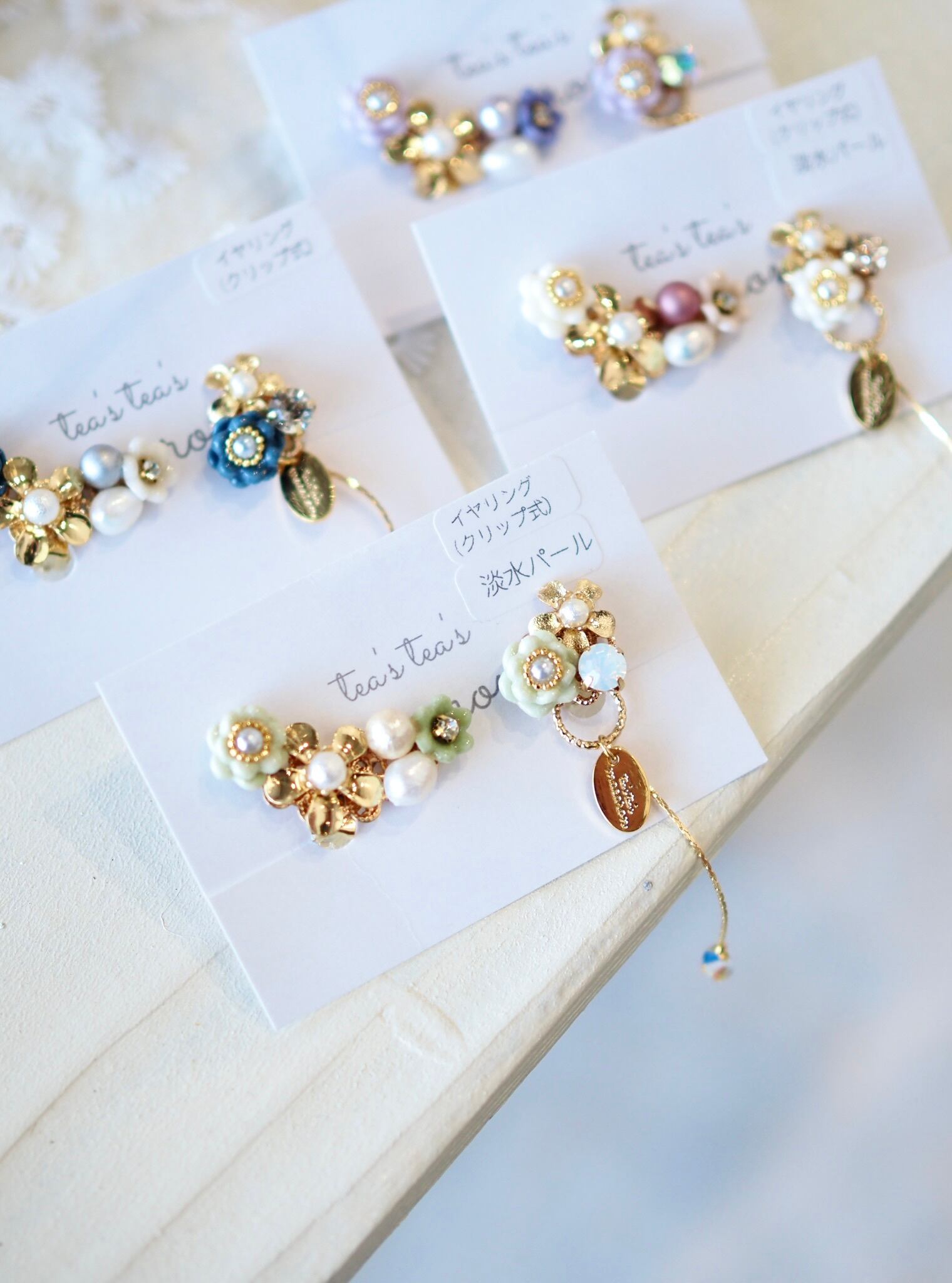 ⚪︎金具は、アレルギー対応のステンレスピアスor痛くなりにくいクリップ式イヤリングからお選びいただけます。