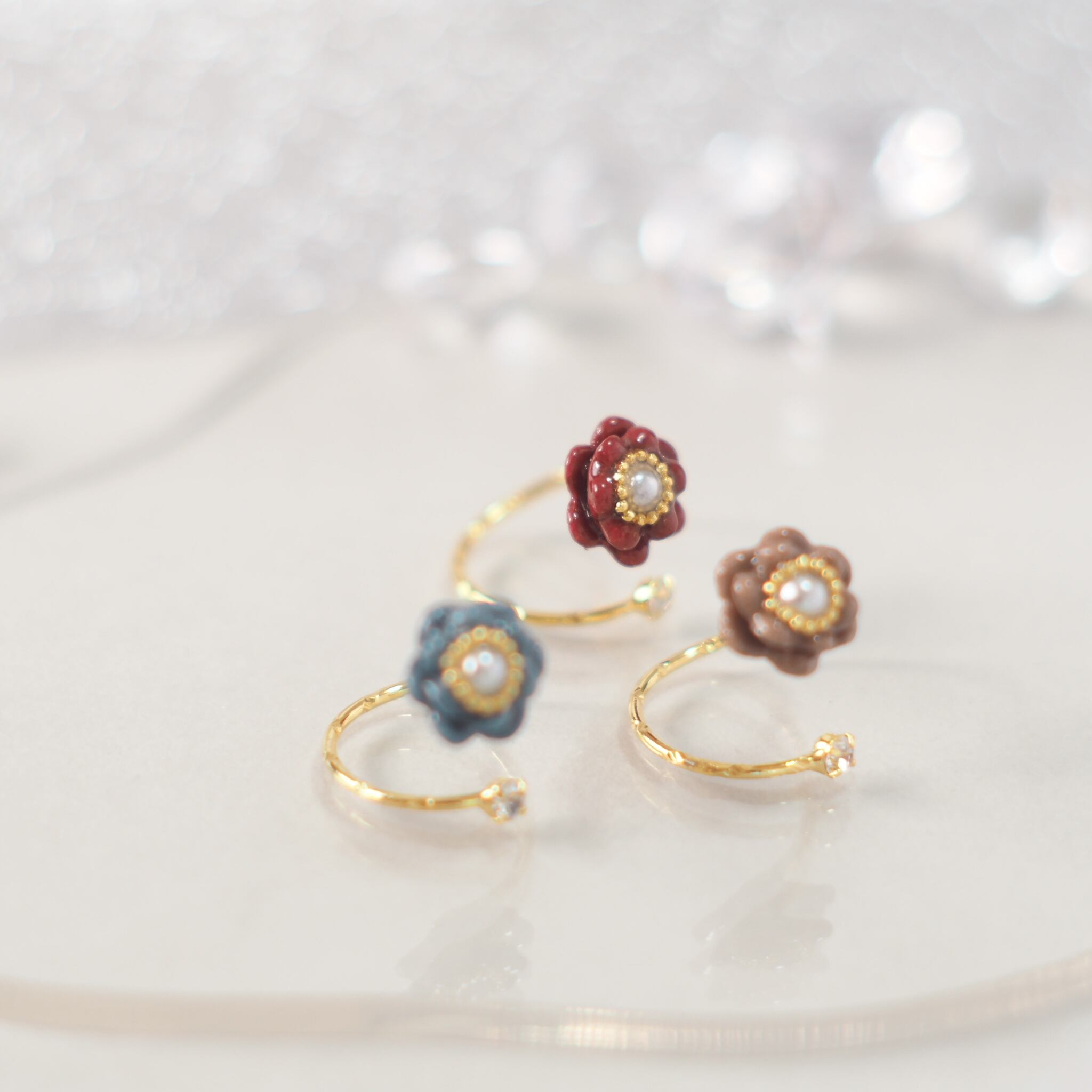 ひとつひとつ手作りしたお花が主役のリング。
